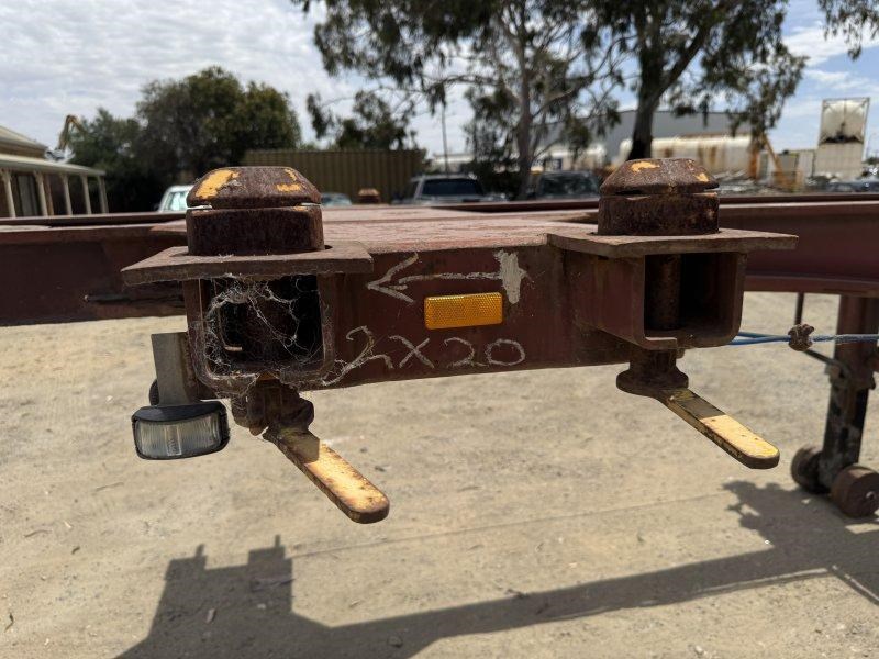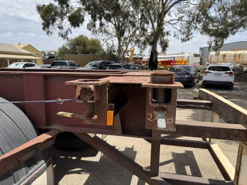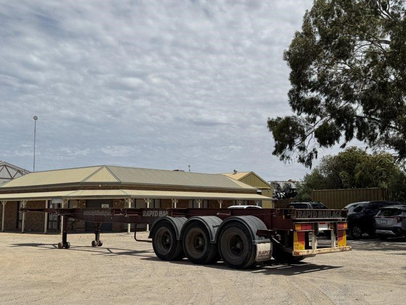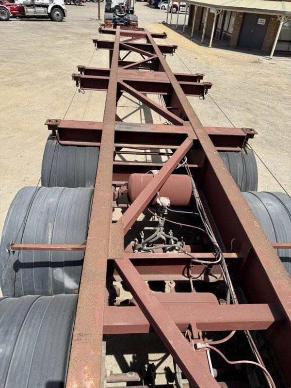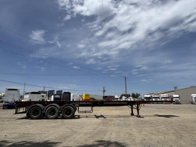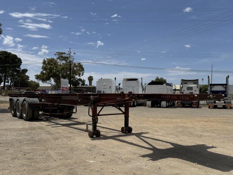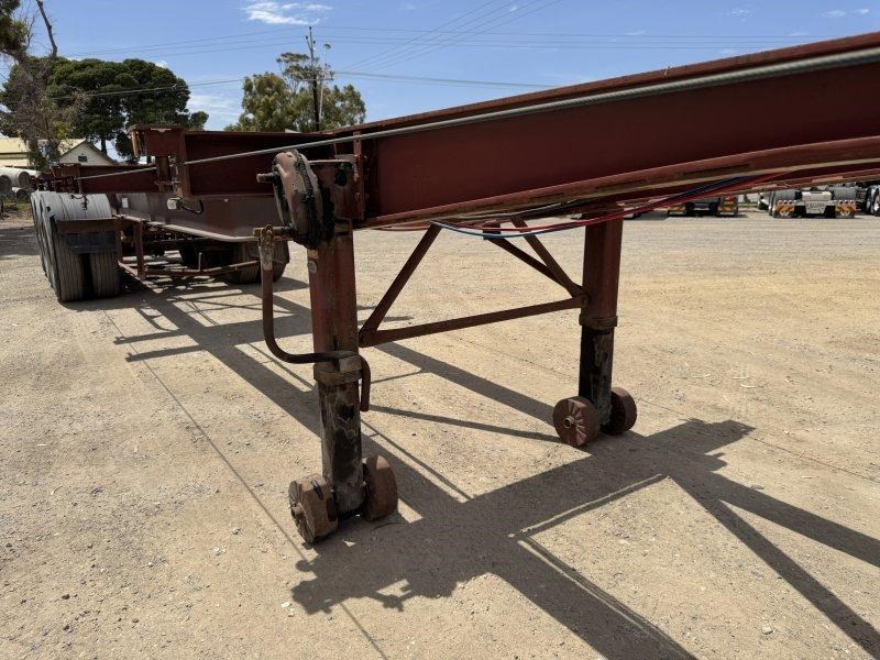 1996 Freighter Triaxle Skel, Spring Suspension, Spider Hubs, Push Out Rear Bumper, Dual Spare Wheel Carrier, 4 Way Twistlocks to Suit 1 x 20ft, 2 x 20ft, 1 x 40ft to suit two positions, Black Radius Guards, Landing Legs