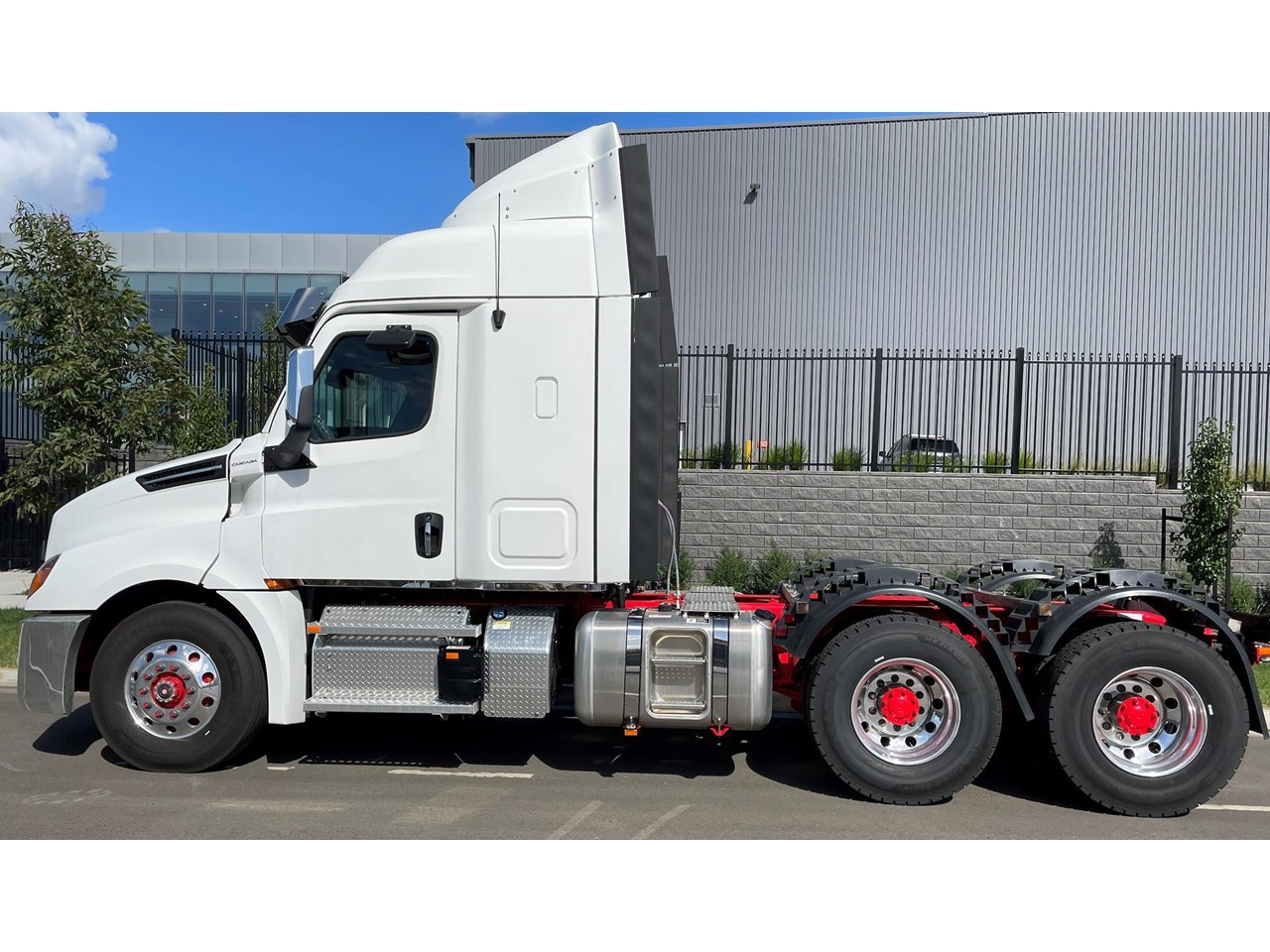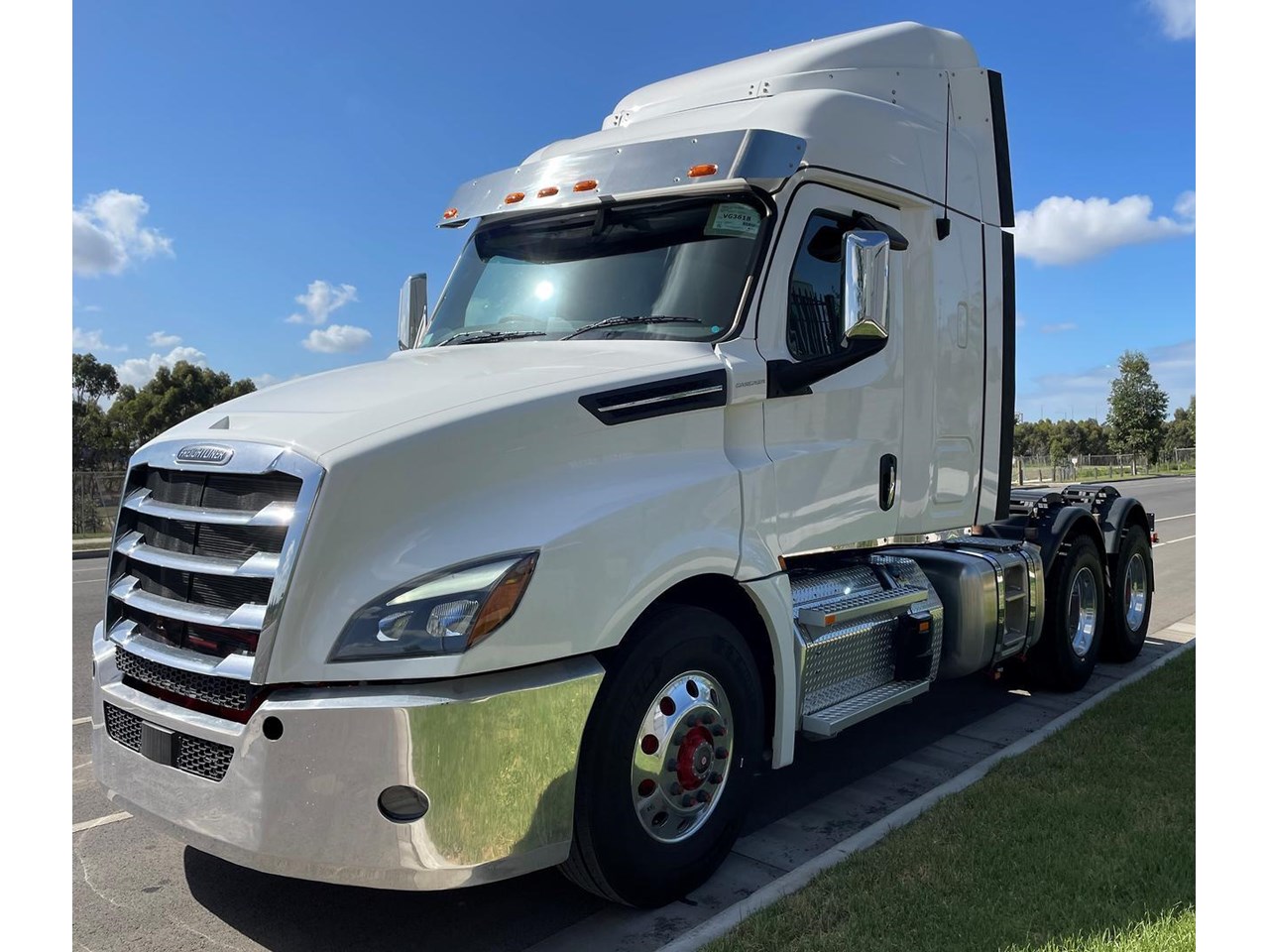 Cascadia 126 prime mover equipped with the latest safety technology Detroit Assurance 5.0 including Lane Assist, Side Guard Assist, Active Brake Assist, Adaptive Cruise Control, Auto Head Lamps And Wipers & Drivers SRS Air Bag.