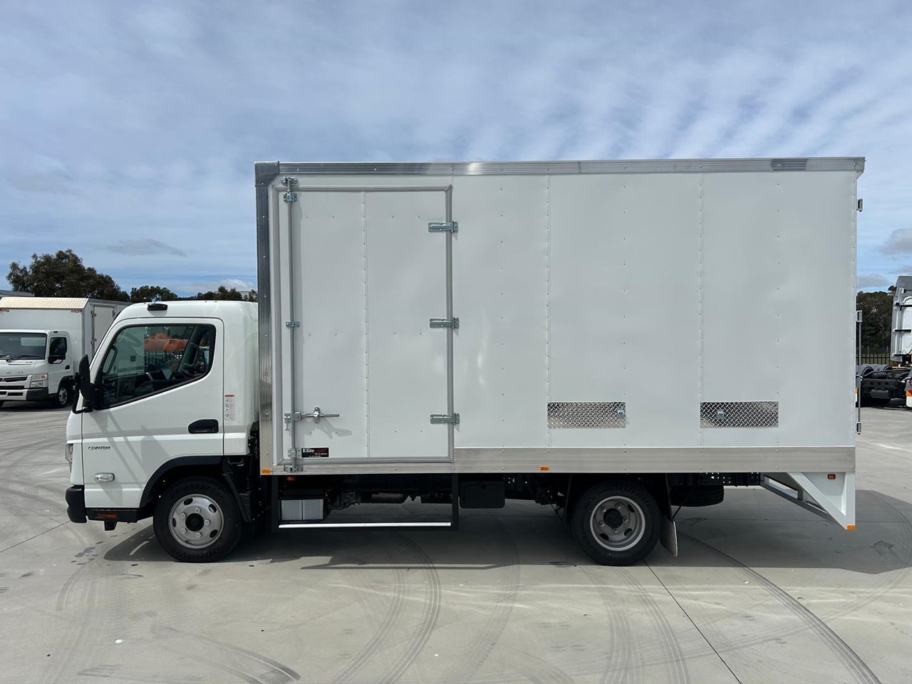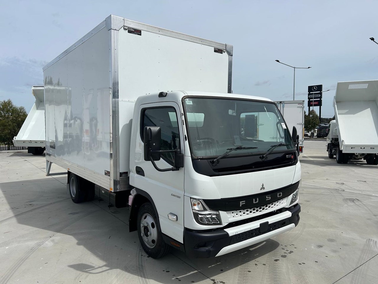 This brand new 2025 Fuso Canter 515 Wide Cab with factory Safety Pack is the ideal solution for city-based trades and deliveries. Fitted with a Elite Truck Bodies 6 pallet Curtiansider with rear barn boors and Hanging gates, it's built tough, reliable, and ready to get to work from day one.