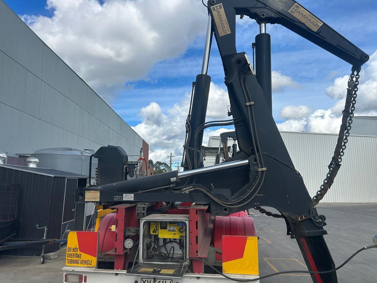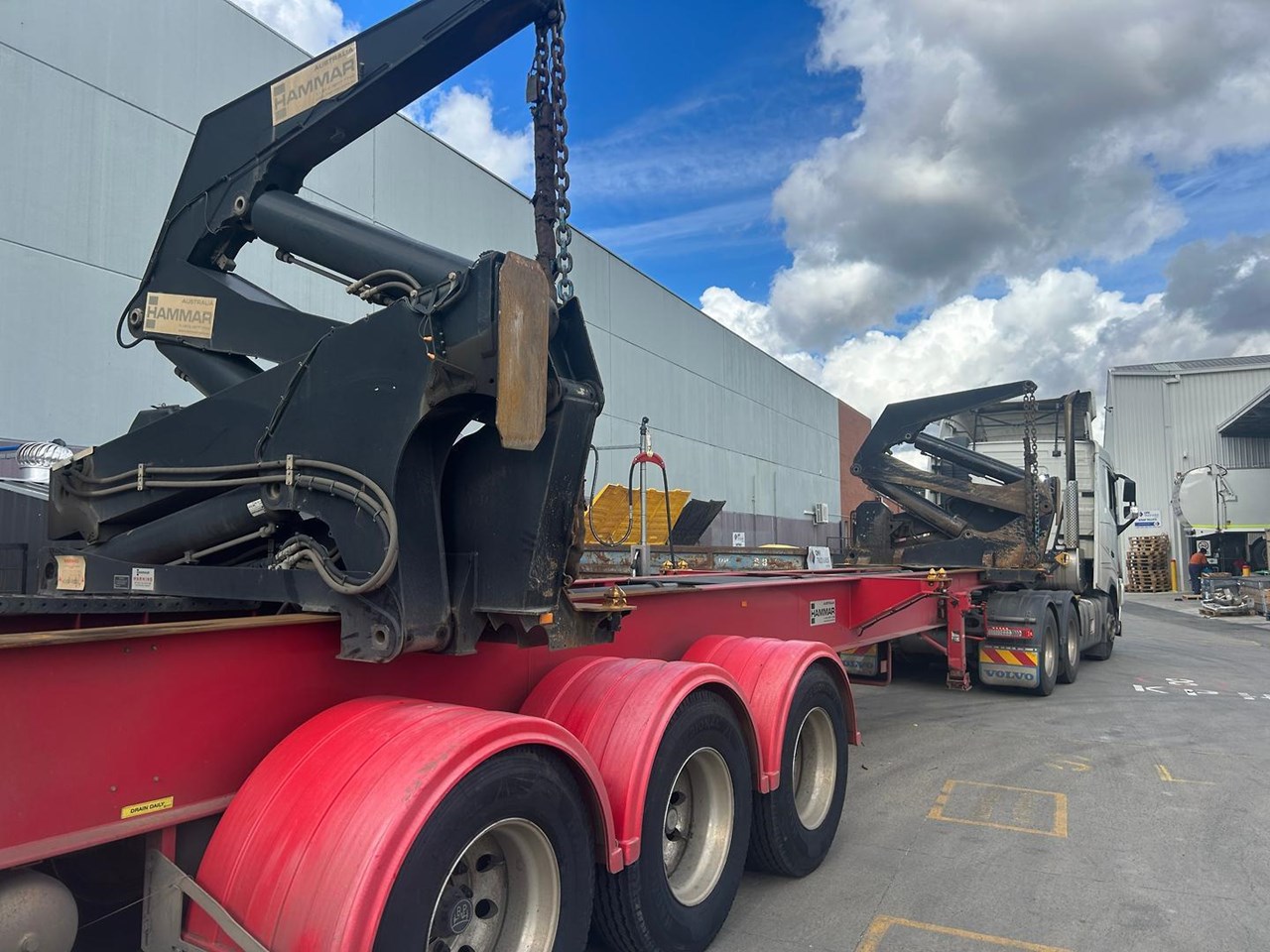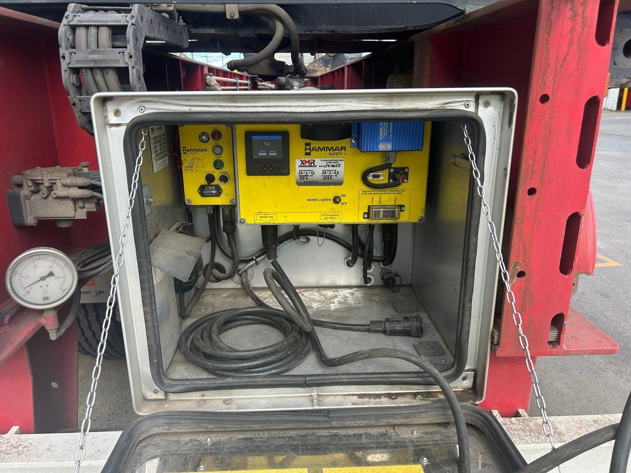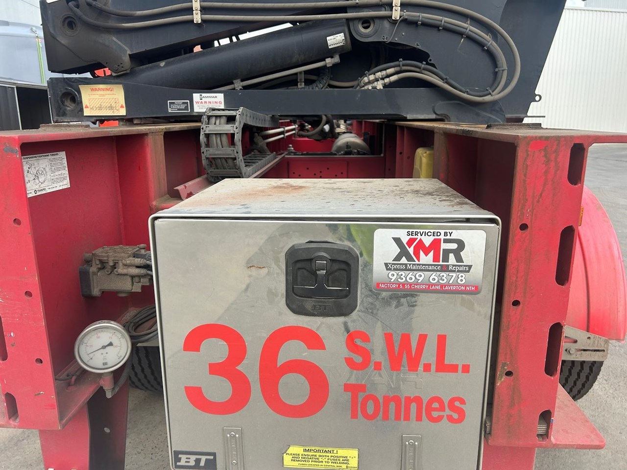 919 HRS 2019 Fixed Chassis, Sliding Cranes - 195 S HAMMER TRIAXLE SIDE LOADER, The S-chassis is a fixed length, and has sliding cranes meaning it can handle multiple container sizes. It has a straight forward design and the lowest tare weight of all Hammar chassis. Low hrs, new tyres clean hardly used triaxle adjustable side loader