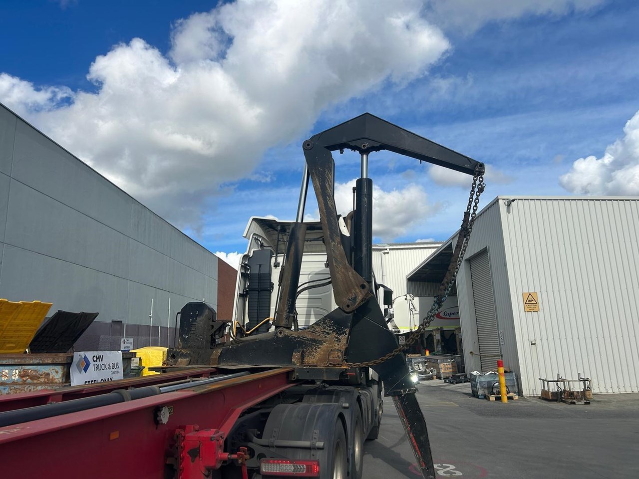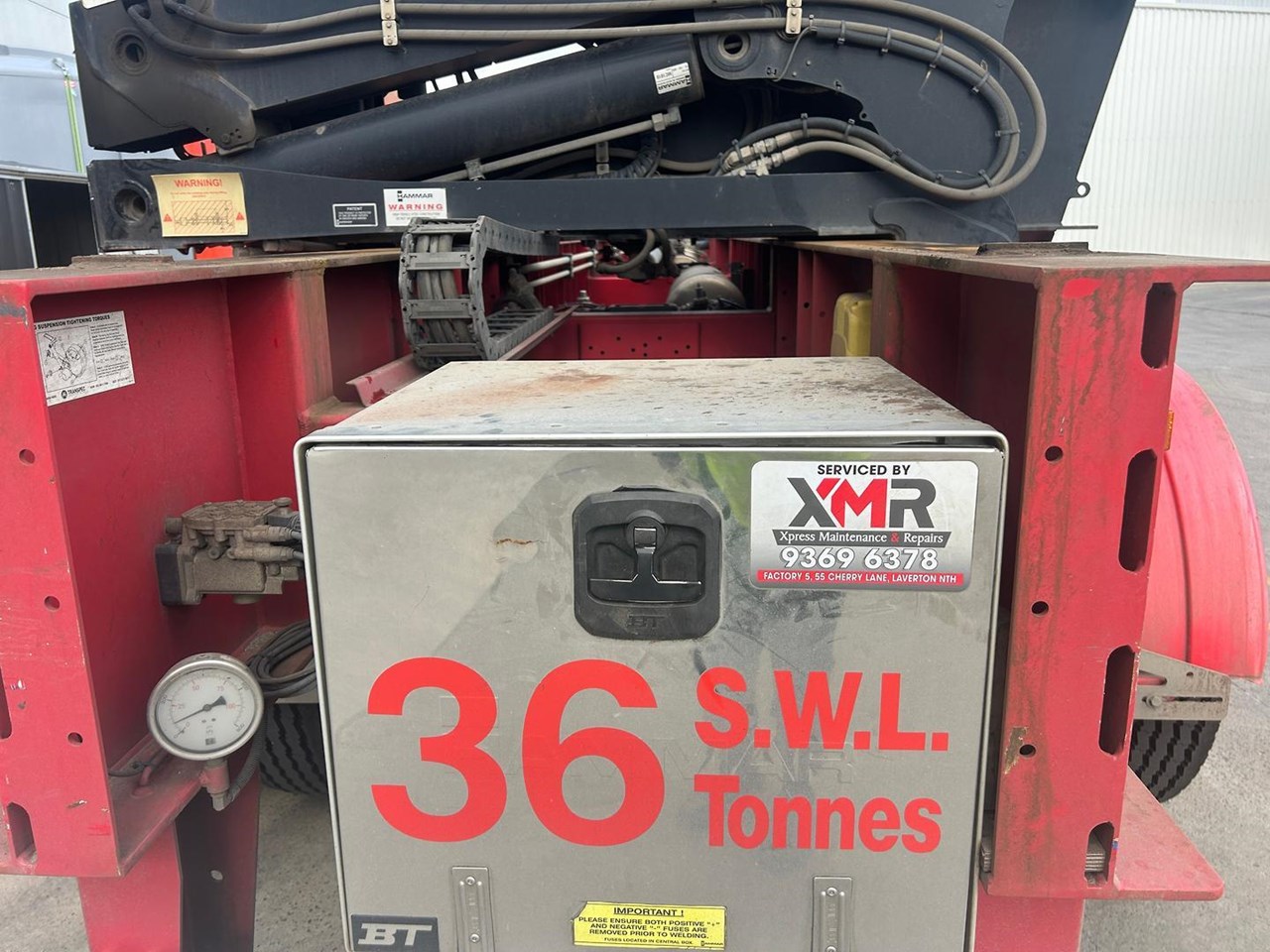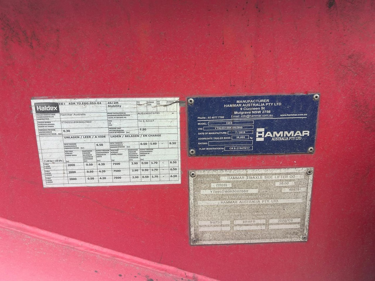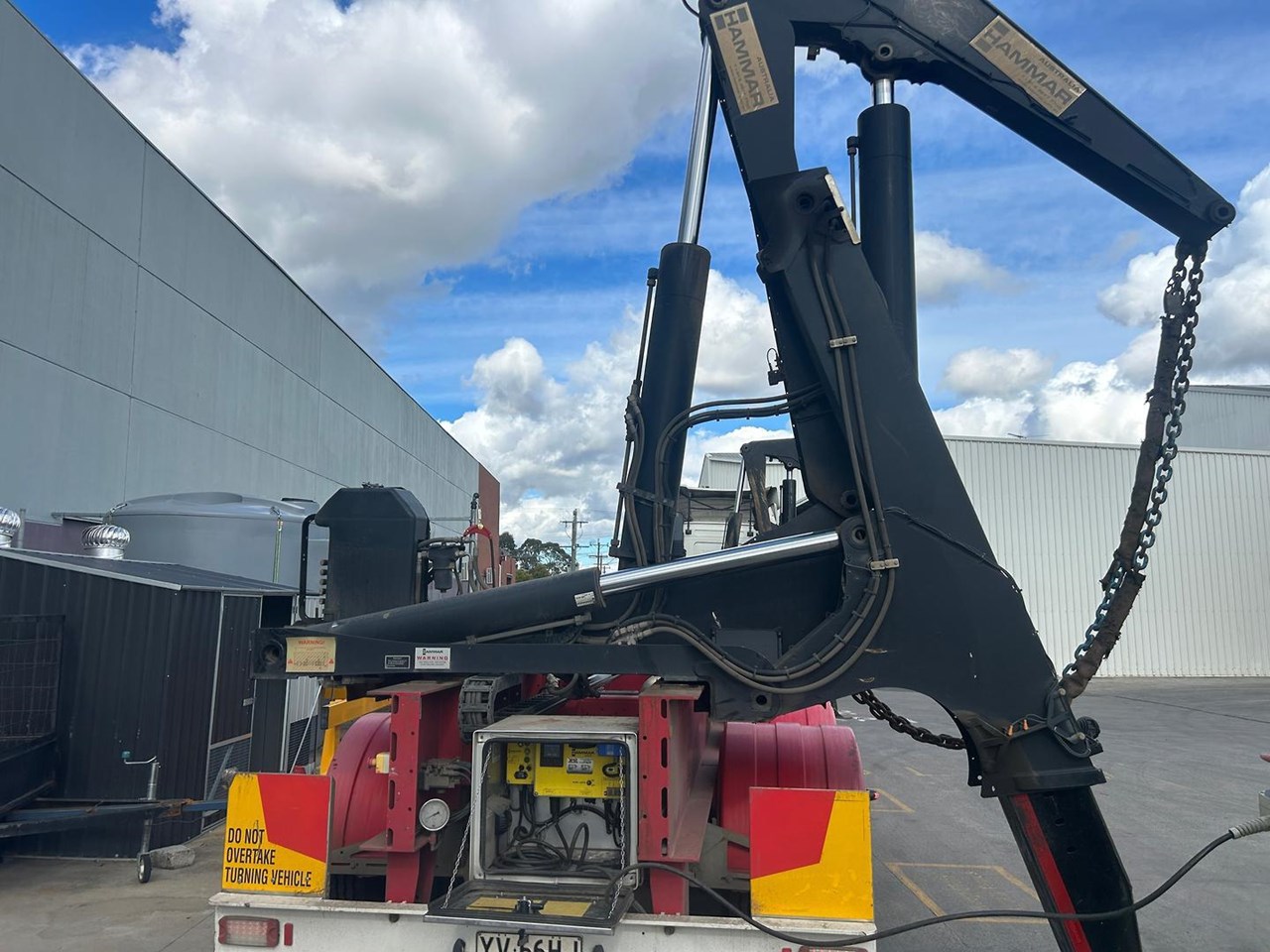 919 HRS 2019 Fixed Chassis, Sliding Cranes - 195 S HAMMER TRIAXLE SIDE LOADER, The S-chassis is a fixed length, and has sliding cranes meaning it can handle multiple container sizes. It has a straight forward design and the lowest tare weight of all Hammar chassis. Low hrs, new tyres clean hardly used triaxle adjustable side loader