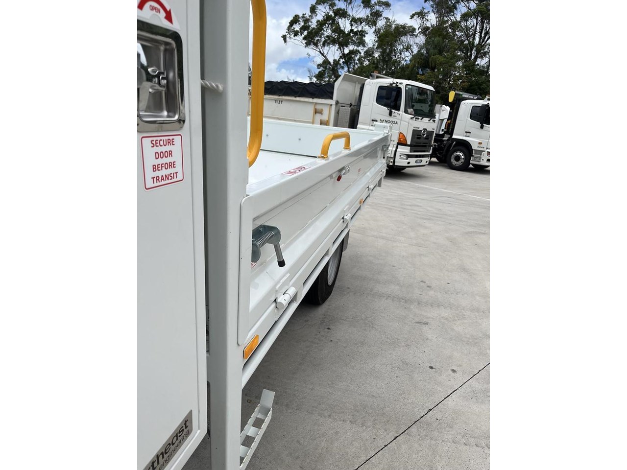 This is a brand-new build by Northeast Engineering and ready to roll. Fitted with Service Tipper body and full 2400 wide storage cabinets as well as signage storage in front.