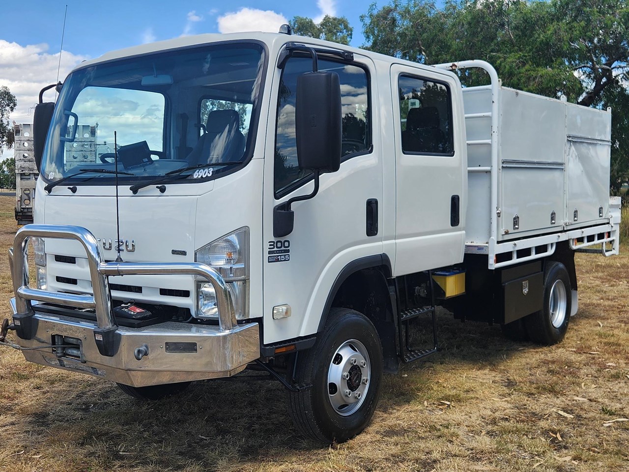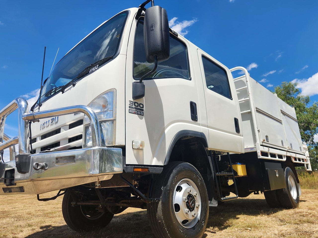 2009 Isuzu NPS300 Crew 4x4 Dualcab Traytop with Toolboxes Sitec 155HP 5.2 Litre Intercooled Turbo Diesel,5 Speed Transmission with High/Low Range 4WD Air Conditioning,7 Seats Custom Alloy Polished Bullbar with Warn 15000LB Electric Winch with Remote Hayman Reese Towbar with Electric Trailer Brakes & Reversing Camera GME TX3420 UHF,Factory Rubber Floor Mats Fitted with All-Truck Bodies Steel Dropside Tray with Multiple Toolboxes,Underbody Toolbox & Large Aluminium Water Tank Work Lights & Revolving Light Tray L-3500 x W-2205. Height of Sides-300 GVM 6000. GCM 9500. Wheelbase 3395. Sold serviced with current NSW or QLD Roadworthy Competitive finance available Delivery arranged to any state Independent inspections welcome and recommended Other 4x4 Trucks in stock including Isuzu NPS250,NPS75-155,FSS500,FSS550,FTS700,FTS750,FTS800 Hino GT & FT 500 Series Mitsubishi Fuso Canter Iveco Daily 55S17 Freightliner FL Crewcab Dualcab & Single Cab Ex Govt,Council,Forestry,National Parks,SES,Rescue Squad,Fire & Rescue Service,Rural Fire Service & Major Fleets Established 1991 with over 200 Trucks in stock and over 7,000 Trucks sold