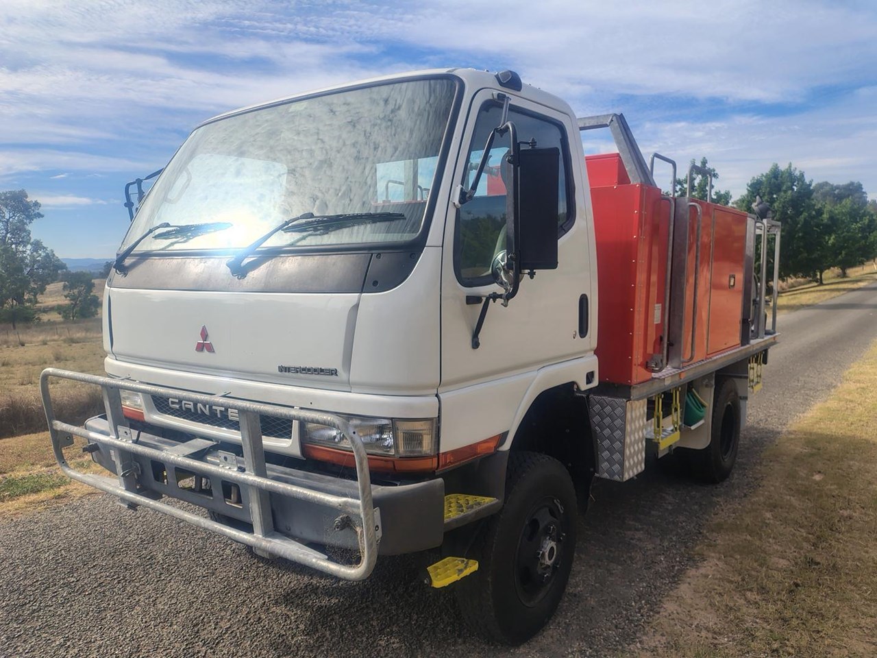 2007 Mitsubishi Canter 500/600 4x4 Fire Truck, Direct from NSW Rural Fire Service, very clean and tidy truck with original low km, Factory turbo diesel, runs and drives very well, 4x4 high and low range. Can be sold as a fully equipped Fire Truck or as a Tray top Truck.
