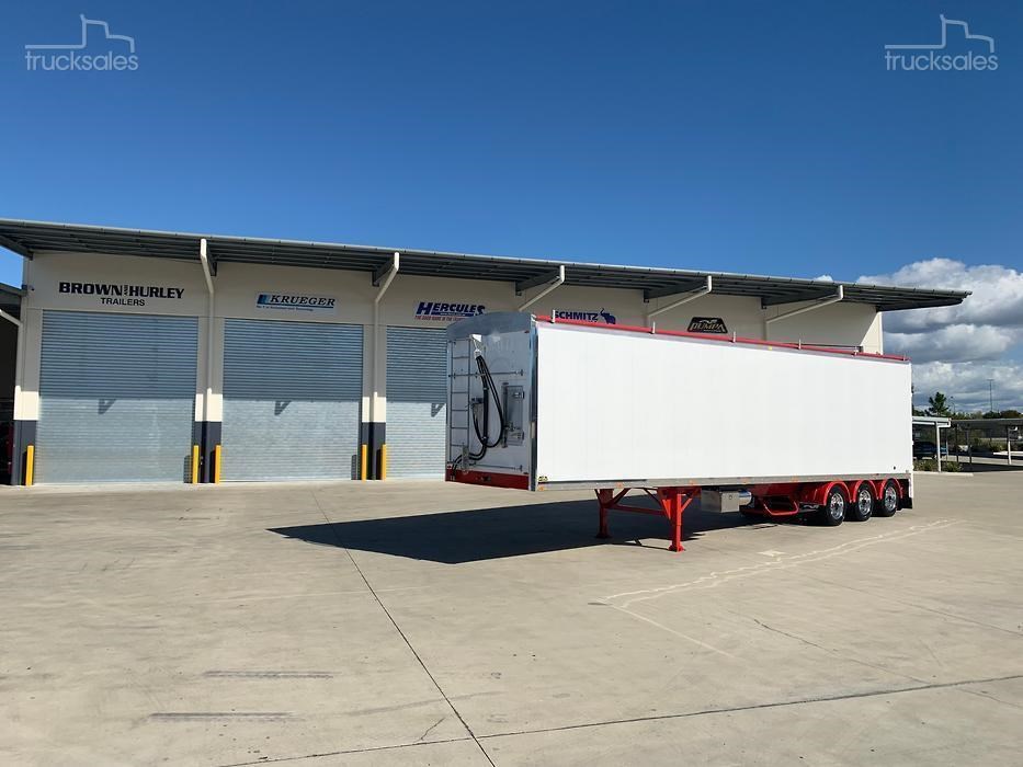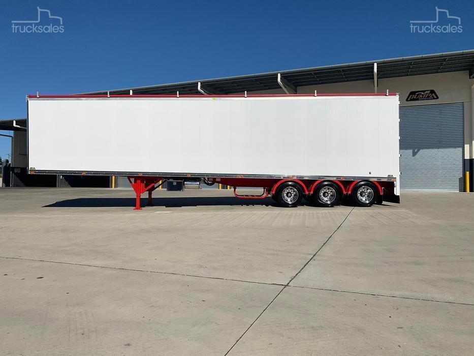 IN STOCK!!!!! New 2025 Pumpa 45ft wedge, White with red chassis, Hendrickson Intraax airbag Suspension, HXL7 Axles, EBS c/w Auto Slacks, Cargo CF500 6mm ribbed floor, Manual vinyl rollover tarp c/w Air Operated Flip Over Centre Bar, alloy barn doors, Hydraulic sweeper tarp, Front access door, Tail-light protection tarp, Right weigh scale, Polished alloy rims, 10 stud 285 PCD, Road Train Bracket & coupling. Call for a Quote & Inspection today.