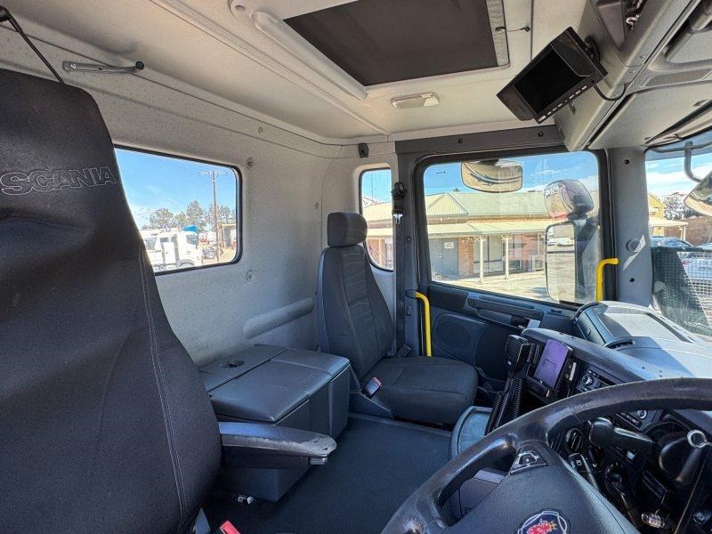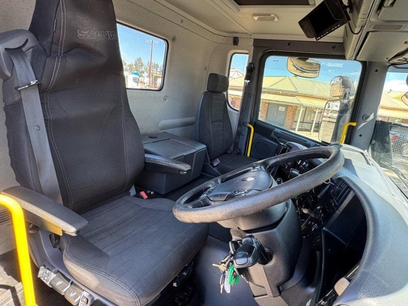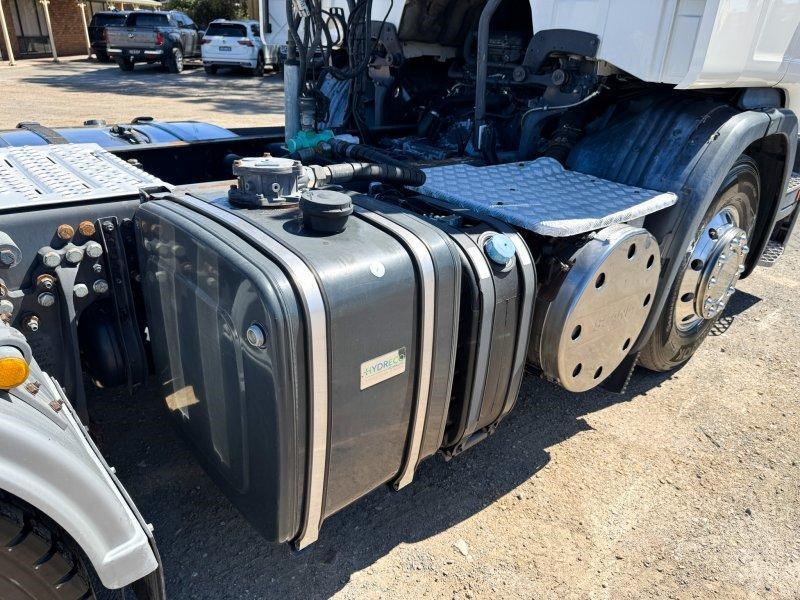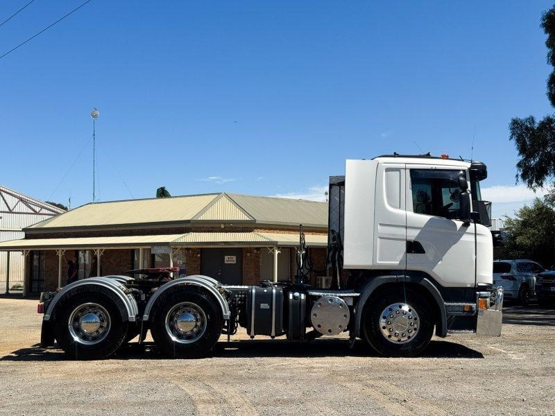 Tidy Scania G440 prime mover with PTO hydraulics, JOST ballrace turntable and full highway setup - ready for B-double or general freight applications.