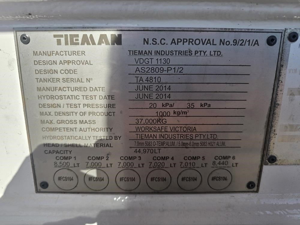 | Title | 2014 TIEMAN TRI AXLE 6 COMPARTMENT |