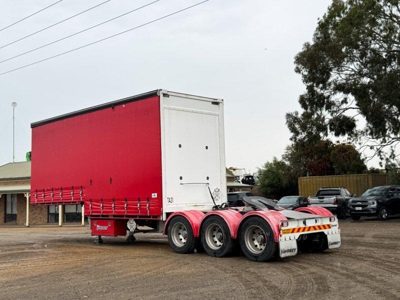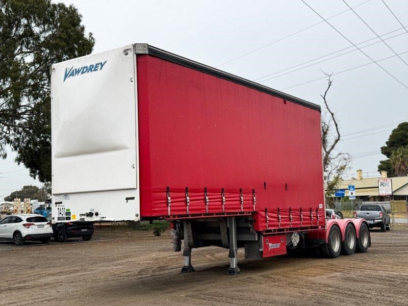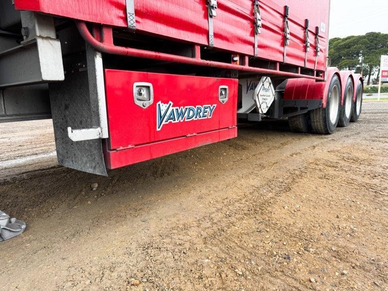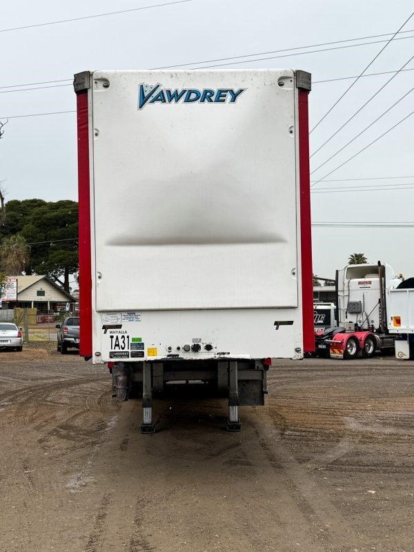 2021 Vawdrey 12 Pallet Drop Deck Mezz A Trailer, Weweler Triaxle Airbag Suspension with K Hitch Axles, Parallel Bearings, 10 Stud Rims, Fixed JOST Turntable, Toolbox, Mezz Deck in drop section, Spare Wheel Carrier Through Mainrail, Full Height Hanging Gates, Load Binders in Track, Solid Rear Wall
