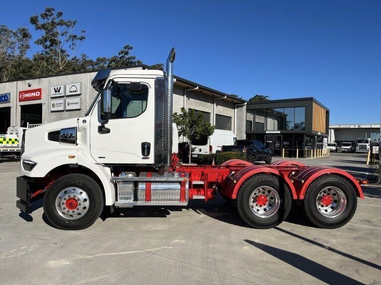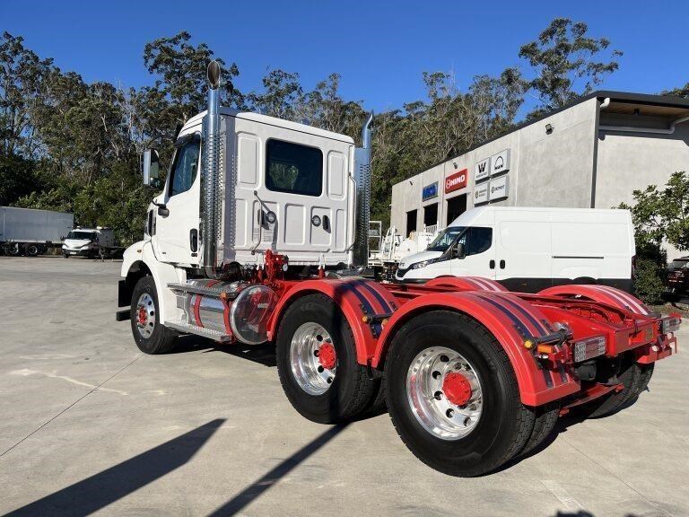 47X Prime mover Day cab, DD13, 525hp @ 1850lb/ft Torque, Detroit DT12 1850-OVX 12 speed transmission, Meritor 46-160 GP diffs with cross locks, 529lts of fuel, Jost fixed turntable, alloy walk plate, plastic guards & UHF radio