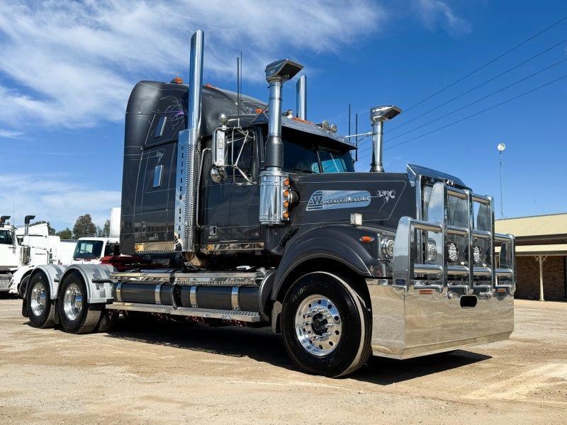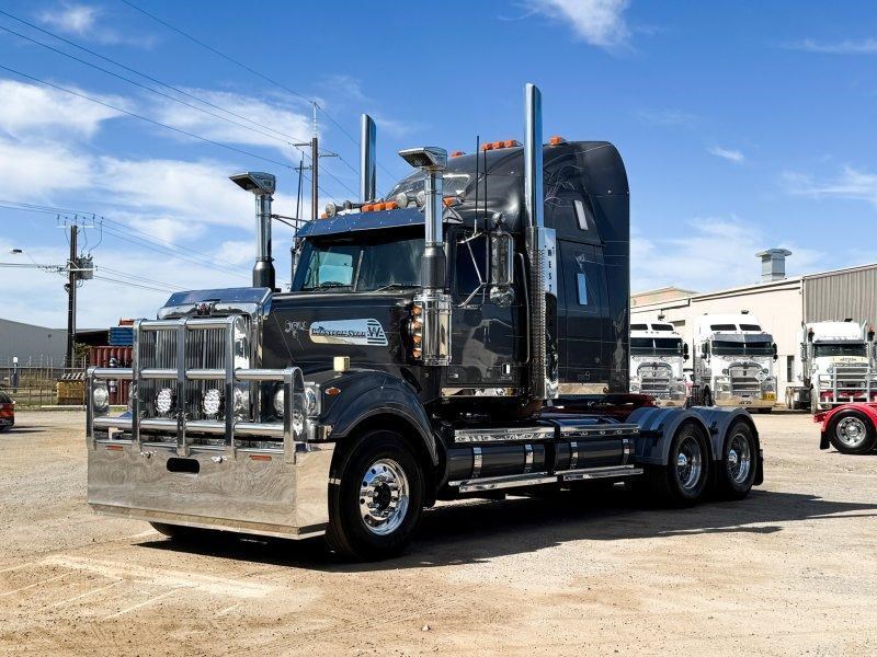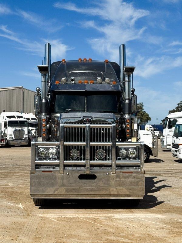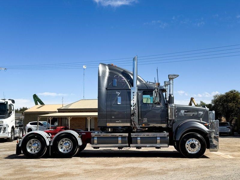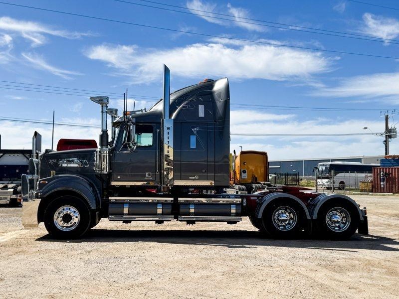 2016 Western Star 4900FXT 6x4 Prime Mover.560 hp Detroit DD15 eng with 18 spd trans-RTL020918B-Meritor RT46-160 rear axles @ 4.30 on Airliner AL46K air bag susp,Alloy wheels and FUPS Bull Bar,Offsets on steer,54" Stratosphere sleeper ,Right Weigh load scales,Diff and X Locks to both rear axles,Alloy walkplate,Sliding 2" QRTT,Rad/cd,UHF x 2,Painted Alloy tanks that hold 1892 is a very tidy 106 ton rated truck that has only ever towed a single trailer.